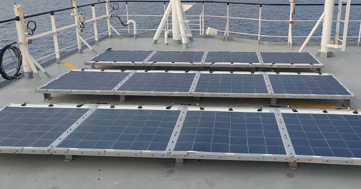 Solar panels & mounting frames installed for evaluation onboard bulk cargo ship (Image credit: Eco Marine Power)